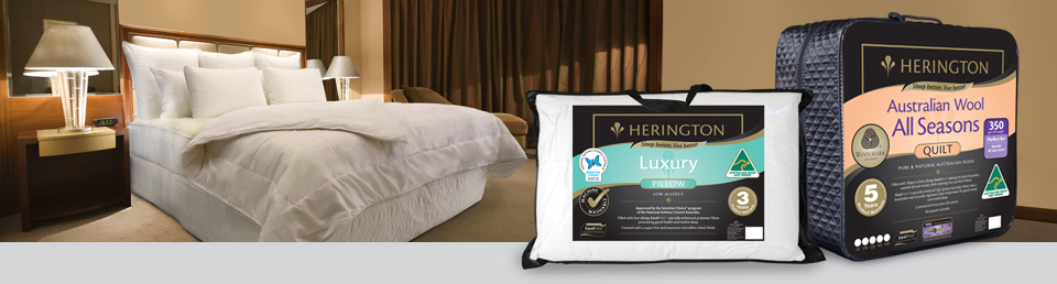 Pillows, cushions, mattress and pillow protectors, quilts and blankets, for hospitals, nursing homes and hotels.